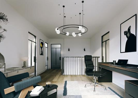 Die Empore über dem Wohnbereich bietet Raum für eine Lounge und ein Büro.