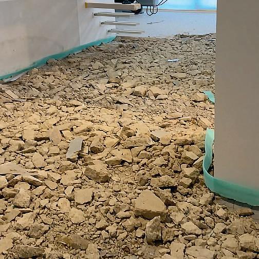 Das Wasser kam aus winzigen, nadelgroßen Löchern in der Kaltwasserleitung. „Mit dem bloßen Auge hat man die nicht gesehen“, erzählt Swetlana. Sie stimmte sich mit dem Gutachter und der Versicherung ab, die Handwerker stemmten den Boden auf, um die kaputten Rohre auszutauschen. Für jede Stelle, die sie reparierten, fanden sie eine neue, aus der Wasser austrat. Zudem konnte niemand sagen, ob der Estrich die Feuchtigkeit unbeschadet überstanden hatte oder ob sich darunter Schimmel bilden würde. Also gab der Gutachter den Startschuss für den Rückbau. „Der Estrich, die Bodenheizung, alles musste entkernt werden – am Ende blieb nur die rohe Betondecke zurück.“ Ein weiteres Problem:
