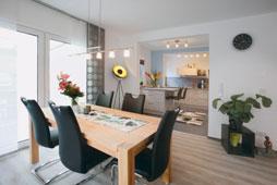 Das Esszimmer wird durch den Erker erweitert. Dadurch ist ausreichend Platz für einen großen Esstisch.