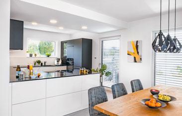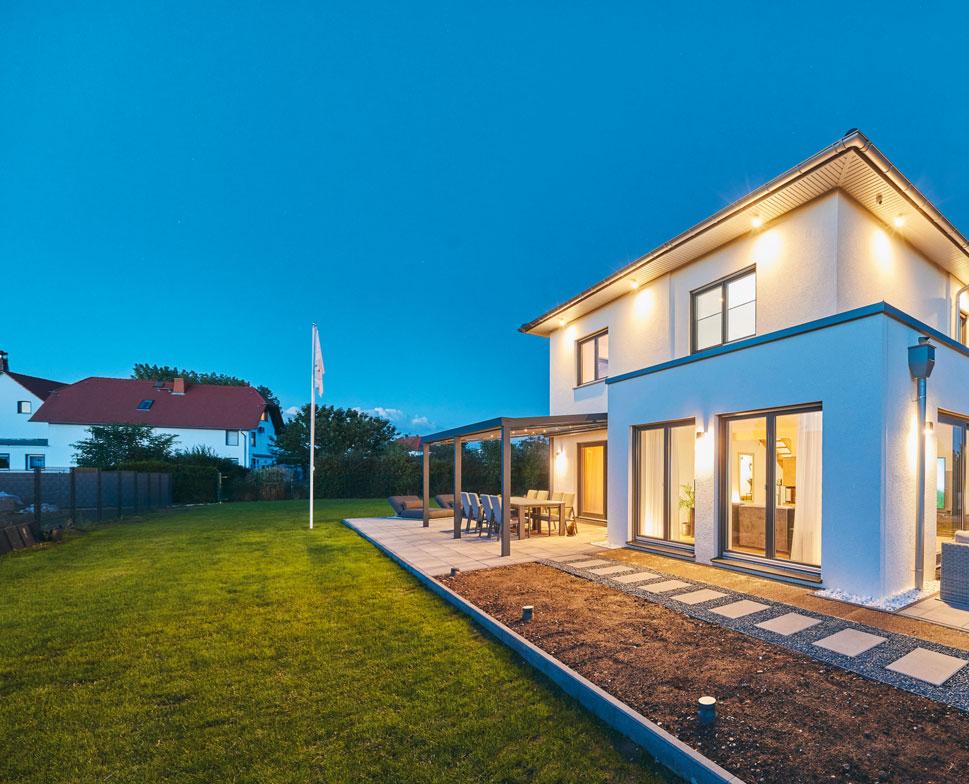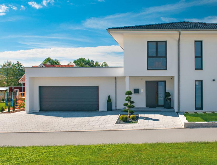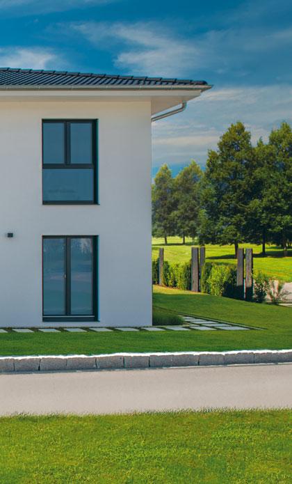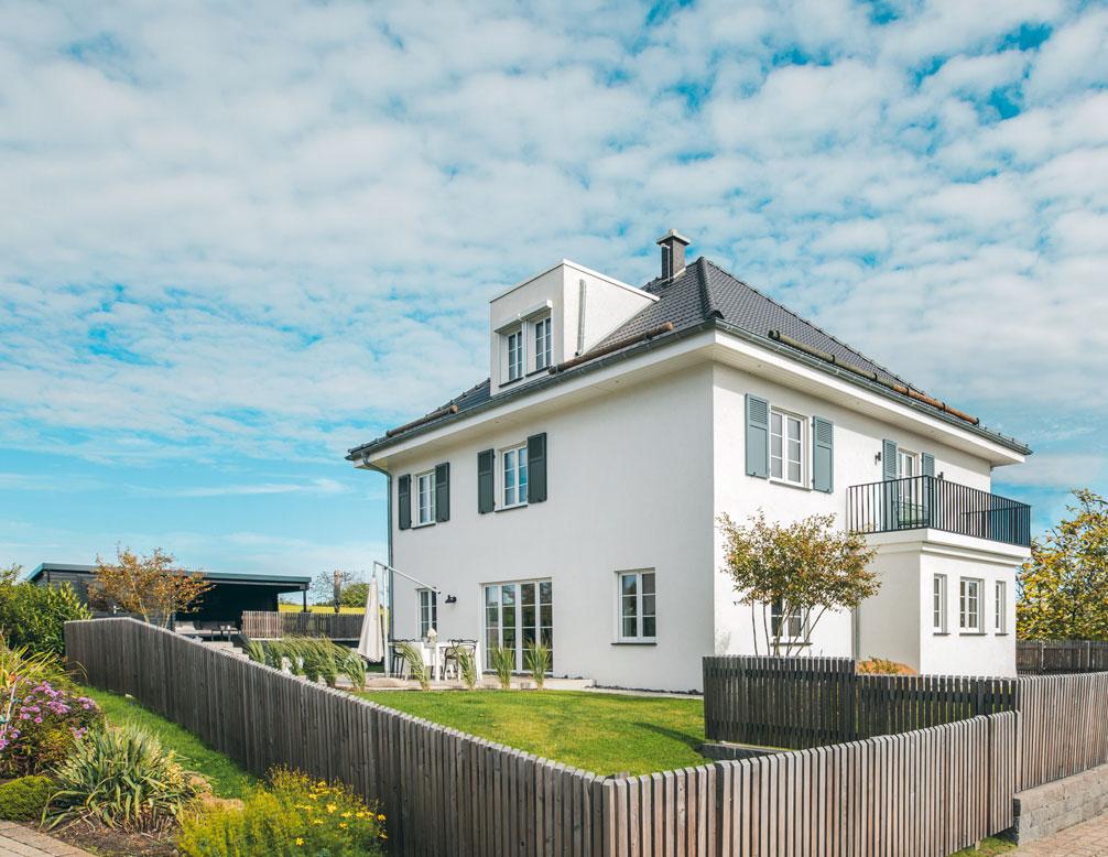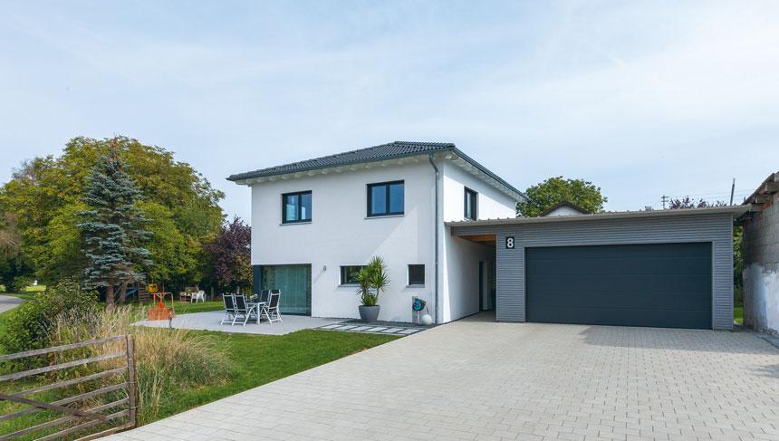Nahe Ulm erstreckt sich in einem idyllischen Dörfchen ein Neubaugebiet. Ringsherum sind Felder und Wälder. Die kleine Siedlung strahlt Behaglichkeit aus. Ein Haus zieht die Blicke auf sich: eine moderne Stadtvilla mit abgesetztem Erker und großen Fenstern von Familie Staible. „Wenn Passanten vorbeilaufen, bleiben viele an unserem Haus stehen und reden darüber, dass es ihnen gefällt“, erzählt Heiko Staible. Er gibt den Besuchern recht. Lachend sagt er: „Das darf ich nicht zu laut sagen, aber wir haben mit das schönste Haus im Wohngebiet.“