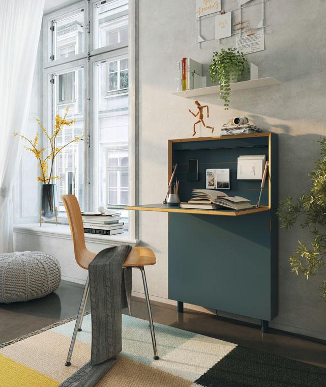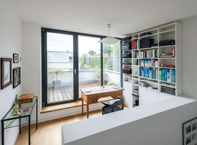 Ein Stadthaus soll kompakt sein, aber trotz begrenzter Wohnfläche nicht einschränken. Das lässt sich aufs Home-Office übertragen: Reicht ein schmaler Sekretär, der schnell aufgeräumt ist wie der abgebildete „Flatmate“? Oder braucht es für effizientes Arbeiten einen eigenen Raum? Müller Small Living