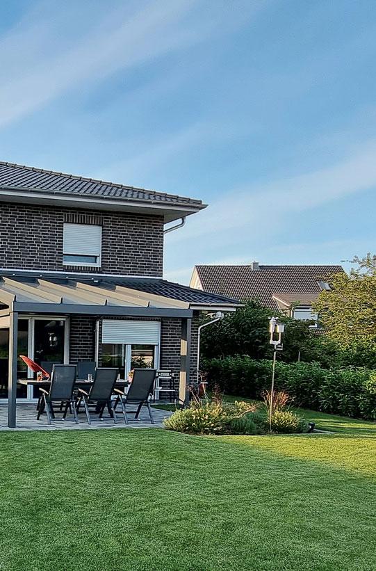 Wärmepumpe. Auch wenn die Familie energetisch Sicht hätte sie ihr Haus lieber über Eck ausgerichtet. „Bei den hohen Temperaturen im Sommer wird es hier sehr heiß“, erklärt der 33-Jährige. Mit einer nachträglichen Terrassenüberdachung konn-