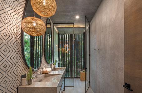 Kul t urgu t Die Inneneinrichtung übernahm Saxe Interiors. Mit gebranntem Holz, Teakholz, handgefertigten hydraulischen Fliesen und gewebten L ampen brachten sie lokales Handwerk in das Design.