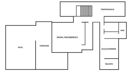 Im Obergeschoss gibt es ein Schlafzimmer mit privatem Balkon und Weitsicht.