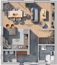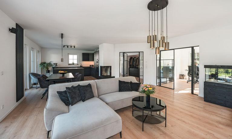 Hausbau, Hochzeit, Kinder – für Jan Nauroth und seine Frau Janina war der Plan klar. „Wir leben auf dem Land, hier macht man das so“, erklärt der Bauherr schmunzelnd. Auch die genauere Planung war schnell beschlossene Sache: Ein Fertighaus sollte es werden, mit großem Wohn- und
