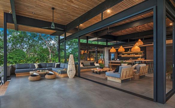Platz für Gäst e Im Erdgeschoss befinden sich fünf Schlafzimmer und eine L ounge mit viel offenem Platz für Ausblicke in den Dschungel