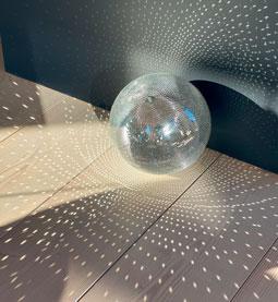 von einem erdbebensicheren Stahlgerüst gestützt, über den Bäumen schweben kann.