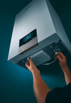 Das Gas-Brennwertgerät „ecoTEC” heizt schon heute mit bis zu 20 Prozent Wasserstoff. Über eine App können Bauherren das Gerät smart steuern. Vaillant