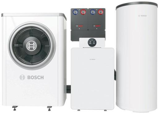 Bei der Luft-Wasser-Wärmepumpe „Compress 3400i AWS“ kann aus sieben Leistungsgrößen gewählt werden. Sie liefert Vorlauftemperaturen von bis zu 60 °C. Mit einem Schallpegel von 56 dB(A) bzw. 58 dB(A) ist sie laut Herstellerangabe besonders leise. Bosch