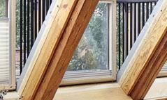 Die vollfl ächige Verkleidung des Dachstuhls mit Birkensperrholzplatten schafft eine angenehme Wohnatmosphäre.