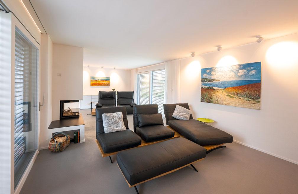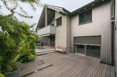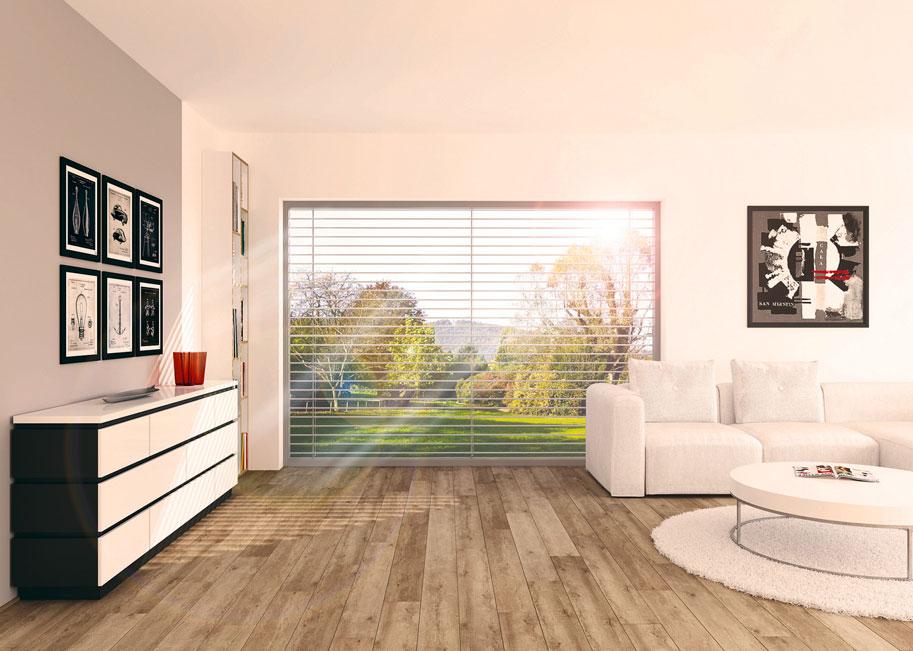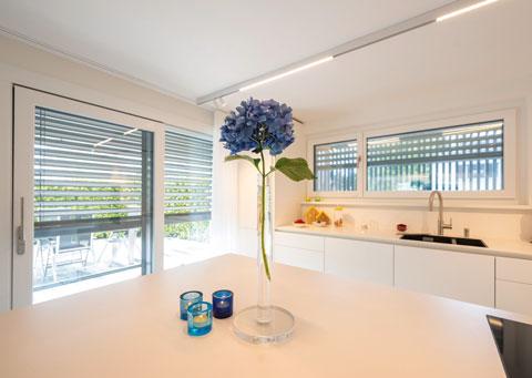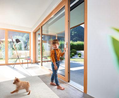 Glastüren lassen das Haus großzügig und hell wirken. Sie schaffen eine Verbindung zwischen den Räumen.