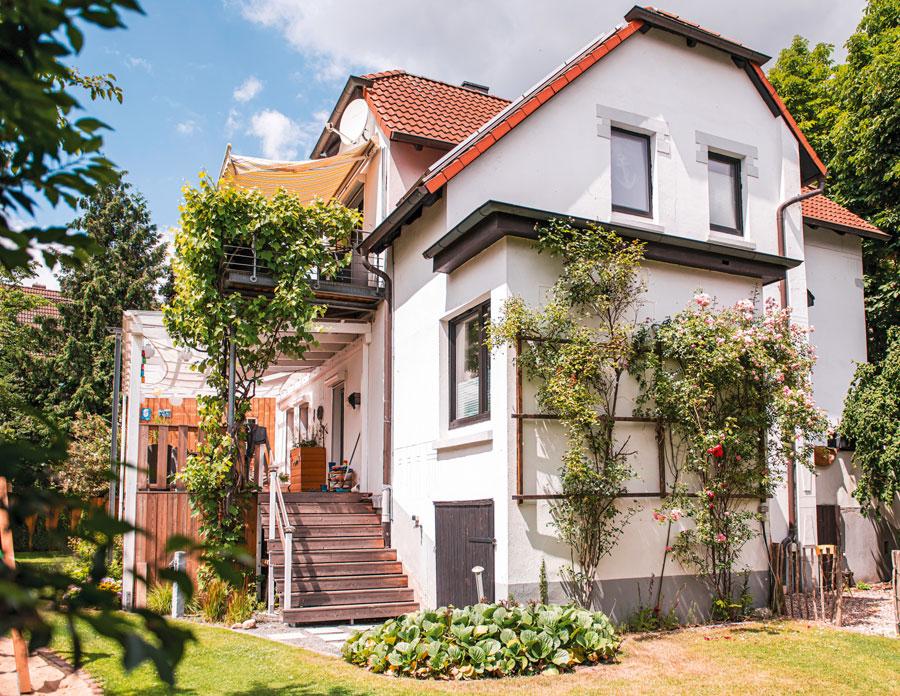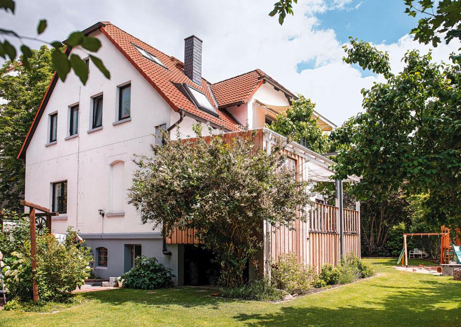 Selbst die Maklerin riet den Bauherren vom Kauf des Hauses, das sie bislang nur von Fotos aus dem Internet kannten, ab. Der Grund: die Hauptverkehrsstraße, an der das Haus liegt. „Für jemanden, der aus der Großstadt kommt, ist das hier wie ein Dorf. Das ist kein Vergleich“, kommentiert Katrin Hofmann die Warnung der Maklerin lachend. Ohne die genaue Adresse zu wissen, fuhr sie mit ihrem Mann nach Weimar. „Wir haben das Haus sofort gesehen und gesagt, das wollen wir unbedingt haben“, erinnert sie sich. Verliebt hat sie sich vor allem in den großen Garten. Der war auch der Grund, warum sich die passionierte Hobbygärtnerin überhaupt auf die Suche nach einem neuen Haus gemacht hat. Das Ehepaar wohnte bereits in ihrer Heimatstadt Erfurt in einem schönen, alten Stadhaus, das sie selbst jahrelang saniert hatten. „Irgendwann ist uns das Haus zu eng geworden“, erzählt die Bauherrin. Wenn sie abends allein zu Hause war, googelte sie immer wieder „Haus mit großem Garten“, bis sie auf das Haus in Weimar stieß.