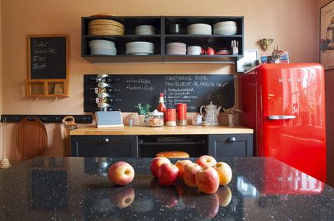 Wenn sich die Hofmanns nicht im Garten aufhalten, wird zusammen gekocht. Auch in der Küche dürfen farbige Akzente nicht fehlen.