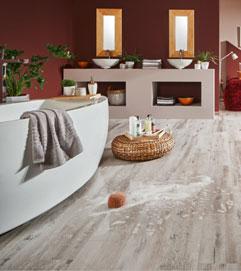 www.bauhaus.info DER PREMIUMBODEN * 1 MIT SPRITZWASSERSCHUTZ *1 Komposition aus natürlichem Holz und Kunstharzen *2 Nur für Privatbereich, siehe Verlegeanleitung *3 Besteht aus natürlichem Holz und organisch-chemischem Bindemittel *4 Eine Verringerung der bakteriellen Aktivitäten wird ohne Einsatz von
