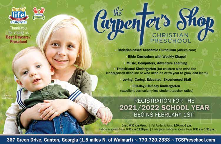The viewpoints of the advertisers, columnists, and submissions are not necessarily those of the editor/ publisher, and the publisher makes no claims as to the validity of any charitable organizations mentioned. The cover and its accompanying magazine content are a paid advertisement. Canton Family Life magazine is not responsible for errors or omissions. No part of this publication may be reproduced or transmitted in any form or by any means without written permission from the publisher.