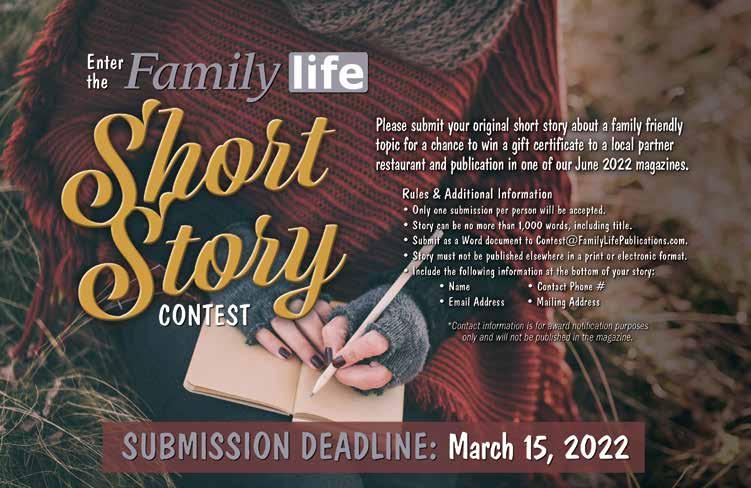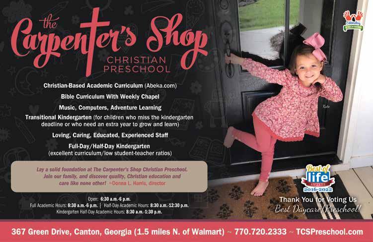 The viewpoints of the advertisers, columnists, and submissions are not necessarily those of the editor/ publisher, and the publisher makes no claims as to the validity of any charitable organizations mentioned. The cover and its accompanying magazine content are a paid advertisement. Canton Family Life magazine is not responsible for errors or omissions. No part of this publication may be reproduced or transmitted in any form or by any means without written permission from the publisher.