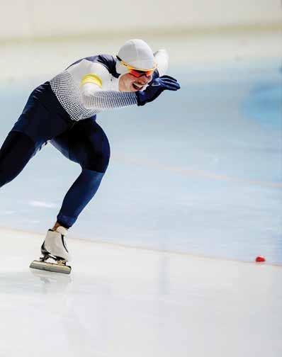 In women’s monobob, a single competitor does all the pushing, steering, and braking in a solo bobsleigh. The winner is the person who completes the route in the fastest time. Made of concrete and coated with ice, the 1,200- to 1,300-meter-long tracks are required to have at least 15 curves, one straight section, and one labyrinth, which is three successive turns without a straight section. Speeds can exceed 75 mph.