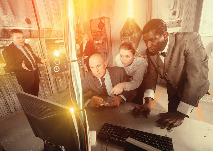 placed in an escape room and given detailed clues to decipher. Each clue led to another opportunity to get out of the room and win the contest. It was entertaining and revealing to see how a fun exercise could generate so much stress, especially when a timer was involved. Once the group calmed down and began to thoroughly examine the details of the clues, they became proficient and actually enjoyed themselves on the way to winning.