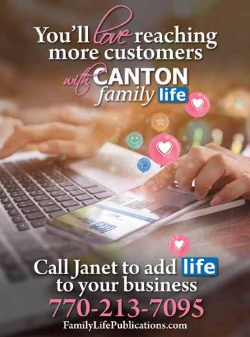 The viewpoints of the advertisers, columnists, and submissions are not necessarily those of the editor/ publisher, and the publisher makes no claims as to the validity of any charitable organizations mentioned. The cover and its accompanying magazine content are a paid advertisement. Canton Family Life magazine is not responsible for errors or omissions. No part of this publication may be reproduced or transmitted in any form or by any means without written permission from the publisher.