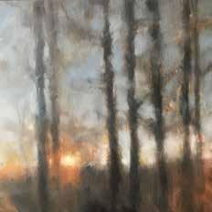 Now a resident of Woodstock, Taylor portrays those settings, their sunrises and sunsets, rivers, forests, farmhouses, barns, and animals in a style he calls “contemporary impressionism based in realism.” Working in oils, he layers and blends tones and hues found in nature, creating hazy atmospheres that conjure possibilities of memory, mystery, hope, and peace.