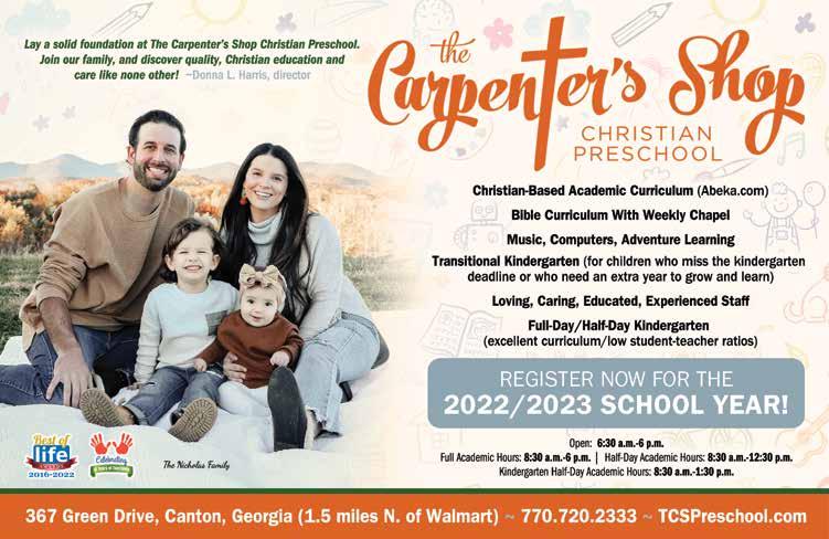 The viewpoints of the advertisers, columnists, and submissions are not necessarily those of the editor/ publisher, and the publisher makes no claims as to the validity of any charitable organizations mentioned. The cover and its accompanying magazine content are a paid advertisement. Canton Family Life magazine is not responsible for errors or omissions. No part of this publication may be reproduced or transmitted in any form or by any means without written permission from the publisher.