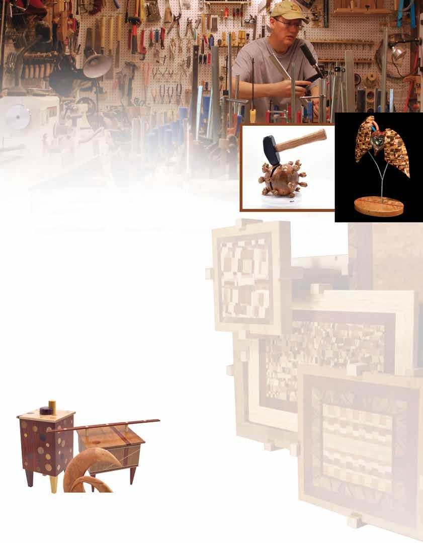 which his intricate, often geometric designs appear not only on the outside surfaces, but also on the insides of his boxes and on the backs of his sculptures.
