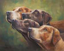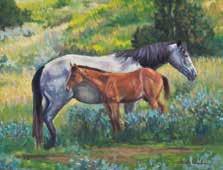 Whether she’s beginning an animal portrait or a landscape, Clukie first works with her palette and values. Using oils or pastels, she might create a palette from a black-andwhite photograph or change the colors of a scene to create a different mood. Once she has the palette and values to her liking, the composition and textures of the piece take shape. She senses what creates the rhythm and movement, the proportion and balance needed to keep the viewer’s eye moving through the work.