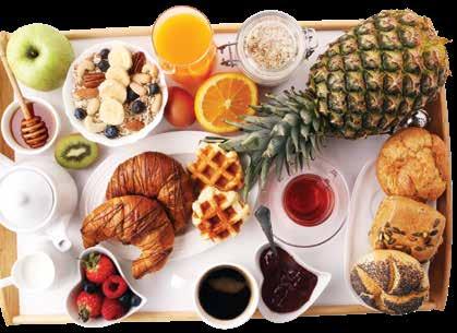 Mini bagels, croissants, muffins, pancakes/waffles, and/or quiches