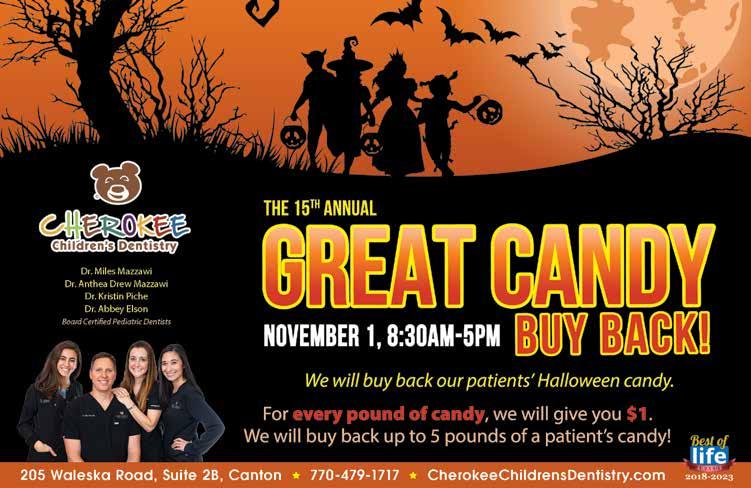 Halloween-Themed Parent’s Night Out Kids ages 5-12 can dress up in their Halloween costumes, play spooky games, swim in the recreational pool, have pizza, and more. $25 per child. 5:3010:00pm, Cherokee County Aquatic Center, 1200 Wellstar Way, Canton. 678-880-4760. PlayCherokee.org
