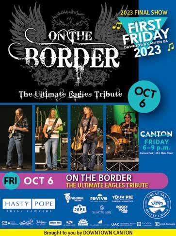 6 Downtown Canton First Friday: On the Border — Enjoy live music by this Eagles tribute band and opening act Wilkes, extended hours for shopping, restaurants, a Kids Zone, a Cruise In, and food and beverage vendors. Please bring a chair. 6:00-9:00pm, Cannon Park, 130 East Main Street, Canton. Velinda.Hardy@cantonga.gov; CantonGa.gov