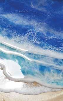 to her full-time pursuit of art. She now has a catalog of works that includes not only her large resin pieces, but also river tables where a frame of live-edge wood surrounds a center of colored resin, mixed media paintings, geode sculptures and tables, and towels, pillows, and duvet covers with resin artwork printed on the fabric.