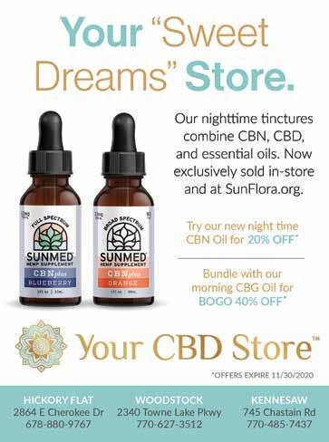 Residents can start the holiday season with a Christmas tree lighting ceremony to honor those who battle cancer. 5:30pm, Cannon Park, 130 E. Main Street, Canton. 678-232-7488. Facebook.com/ LoveLightsATreeCherokee