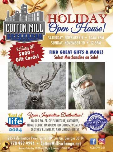 Lighting — Head to downtown Canton for the lighting of this year’s Christmas tree and other holiday festivities! 6:30-8:30pm, Cannon Park, 130 East Main Street, Canton. Cantonga.gov, Facebook.com/ DowntownCantonGA