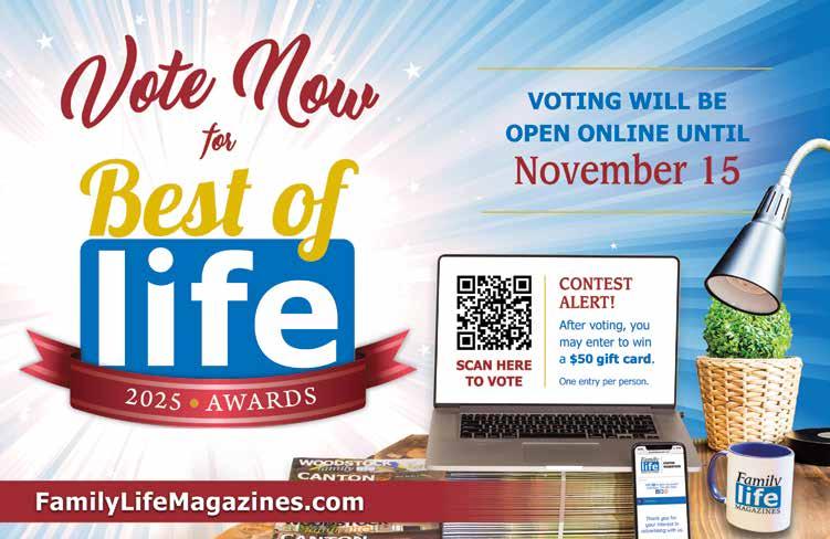 The viewpoints of the advertisers, columnists, and submissions are not necessarily those of the editor/ publisher, and the publisher makes no claims as to the validity of any charitable organizations mentioned. The cover and its accompanying magazine content are a paid advertisement. Canton Family Life magazine is not responsible for errors or omissions. No part of this publication may be reproduced or transmitted in any form or by any means without written permission from the publisher.