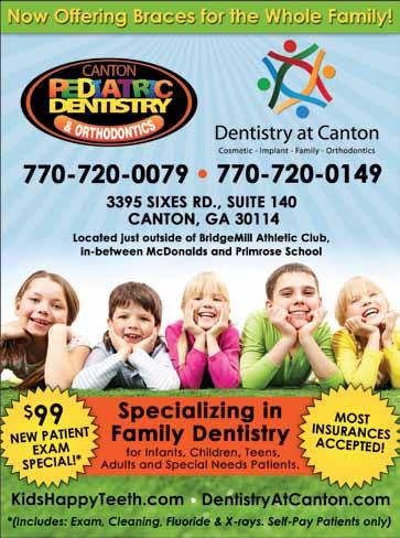 Dr. Merritt has been helping families in and around Canton since opening BridgeMill Dentistry on Sixes Road in 2002. 770-704-1812, BridgeMillDentistry.com