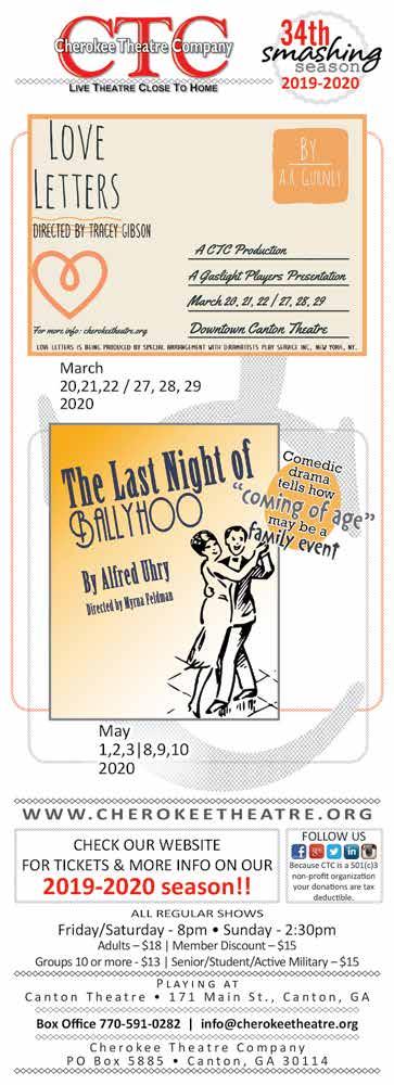 6-8 Going Home to Dixie — This musical presented by the Peachtree Players Theater Company is about what happens when a simple wedding becomes a site of shocking confessions and surprises. 8:00pm Friday/Saturday and 2:30pm Sunday, Canton Theatre, 171 E. Main Street, Canton. PeachtreePlayers.com