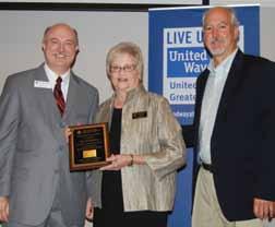 City of Waleska Mayor Doris Jones (center, left photo) and City of Woodstock Mayor Donnie Henriques (center, top photo) accept their Mayor’s Challenge awards from Chamber Chairman Lewis Cline, Bank of North Georgia (left), and Going Green Chairman Vic Knight, Waste Management.