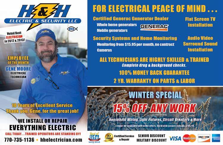 is manager of business development for H&H Electric and Security LLC. 770-735-1136. MyAtlantaElectrician.net
