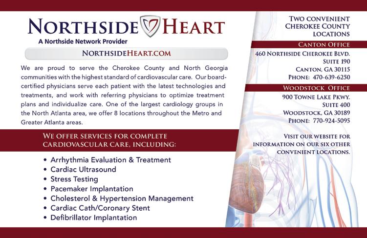 Senior Lunch & Learn by Cherokee Triad S.A.L.T. (Seniors and Law Enforcement Together) — On the third Thursday of each month, this FREE community program is designed to educate seniors on a variety of topics including identity theft, phone scams, housing options, in-home care, advanced directives, and problems associated with aging. 12:001:00pm, Heritage Fellowship, 3615 Reinhardt College Parkway, Canton. Please RSVP for Lunch 770479-9415 or JBishop@ heritagecanton.com. HeritageCanton.com