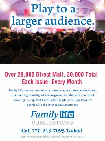 Family Life publications have the largest monthly circulation of direct-mailed community magazines in our area. Canton Family Life is a monthly community magazine with a total print count of over 30,000, direct mailing over 28,000 copies to Canton, Sixes/BridgeMill, Holly Springs, Hickory Flat, and Waleska.