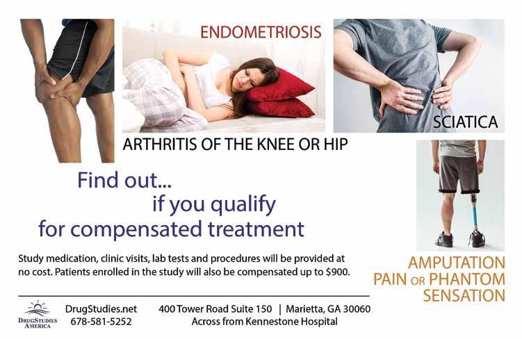 8 Sacrifices Made, An Evening of Honor and Remembrance — Bring a veteran and/or a dish to share and a $5 donation to this potluck dinner and presentation, which will reflect on the significances of service and the gravity of sacrifice. Register at CherokeeVeteransCommunity. org, then “SACRIFICES MADE.” 5:30pm, First Baptist Church Woodstock, 11905 Highway 92, Woodstock. 678-570-5828. VeteransMinistry@fbcw.net. CherokeeVeteransCommunity.org