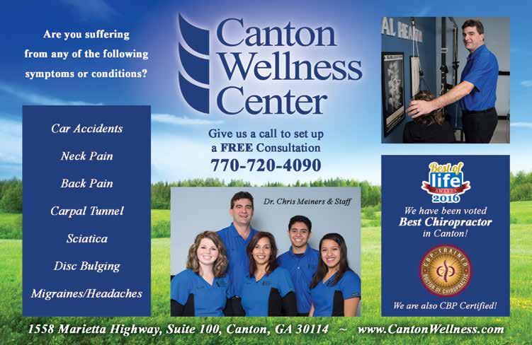 Dr. Chris Meiners is a chiropractor and owner of Canton Wellness Center, 1558 Marietta Highway Canton. 770720-4090. CantonWellness.com