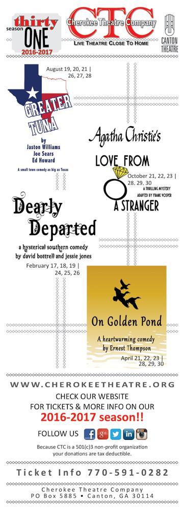 By Ed Howard, Joe Sears and Jaston Williams. A small town comedy as big as Texas! Produced by the Cherokee Theatre Company. Friday & Saturday 8:00 pm, Sunday at 2:30 pm, Canton Theatre, 171 E Main Street, Canton. 770-591-0282. CantonTheatre.com
