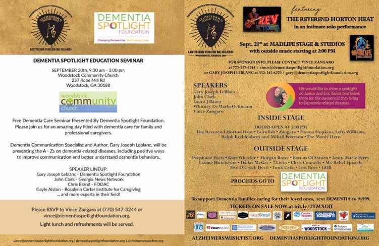 Alzheimer’s and Dementia Support Group — Meet up with fellow caregivers of Alzheimer’s and dementia patients on the third Monday of each month for support and to learn caregiving strategies. 10:00am, Hickory Flat Church Administrative Building (to the left of the church), 4056 East Cherokee Drive, Canton. Fritz Kupsky 678-471-6676 or Rich Seibert 770-712-2961.