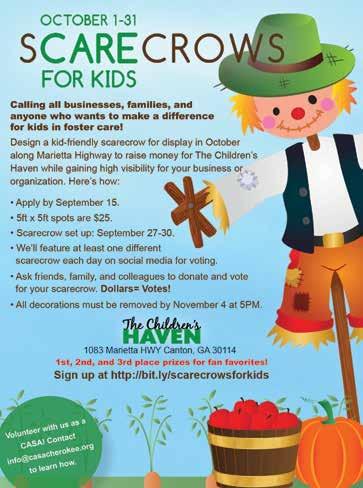 CASA Volunteer Training — Change a child’s story by learning to volunteer as a court appointed special advocate (CASA) for children in foster care. Evening classes are held on Tuesdays and Thursdays. 6:00-9:00pm, The Children’s Haven, 1083 Marietta Highway, Canton. Info@CherokeeChildrensHaven.org. CherokeeChildrensHaven.org