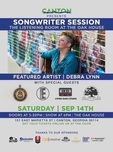 14 Songwriter Session — The Oak House and Cherokee Music Center present local songwriters, featuring Barb Carbon, Chloe Litten, Sandra Porter, Amanda Roark, and Debra Lynn Rodriguez. Come discover your new favorite artist! 6:00-10:00pm, The Oak House, 151 E. Marietta Street, Canton. 678-653-6625. TheOakHouse.com
