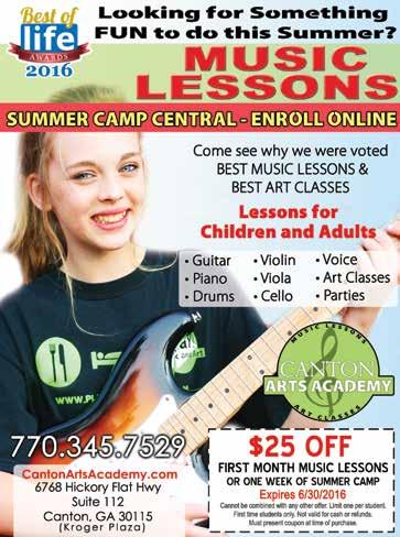 1 First Friday — Canton’s monthly block party, featuring live music, food and good times! July’s theme is “At the Beach,” with music by Kid Brothers Band. 6:009:00 pm, Canton Historic Downtown Loop. 770-704-1548. CherokeeChamber.com