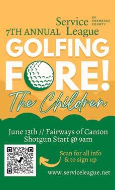 7th Annual Golfing FORE! the Children Presented by the Service League of Cherokee County, play golf for a great cause All funds raised support the League’s mission to meet some of the most basic needs for children in Cherokee County $130 per golfer or $500 per foursome 9:00am shotgun start, Fairways of Canton, 400 Laurel Canyon Parkway, Canton. ServiceLeague.net