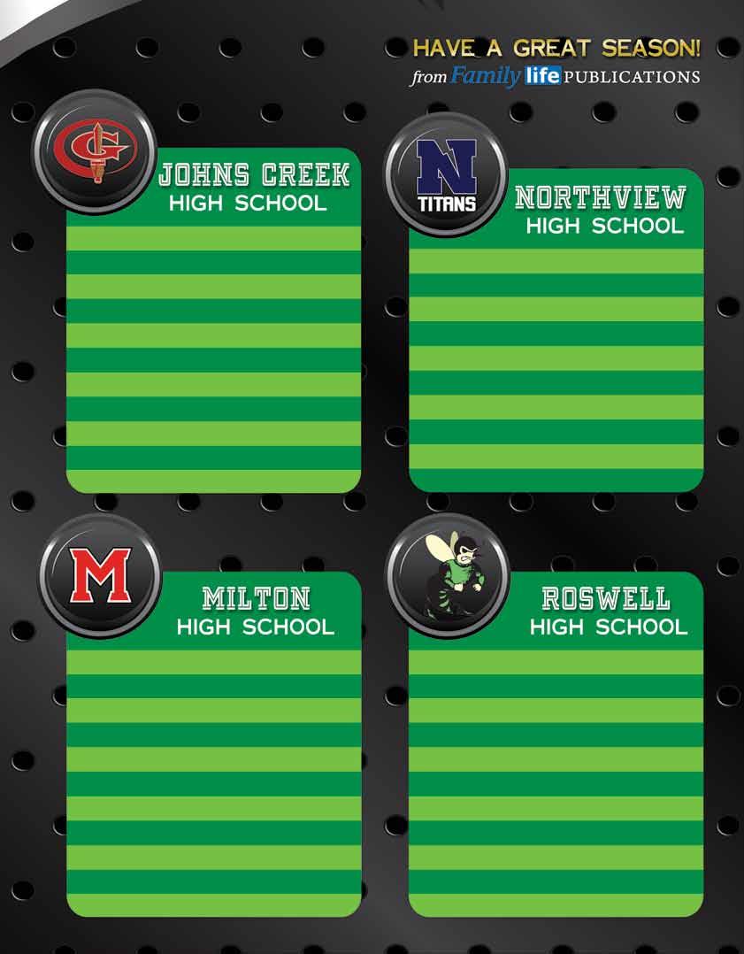 The viewpoints of the advertisers, columnists and submissions are not necessarily those of the Editor/Publisher and the Publisher makes no claims as to the validity of any charitable organizations mentioned. North Fulton Family Life magazine is not responsible for errors and omissions. No part of this publication may be reproduced or transmitted in any form or by any means without the written permission from the Publisher.