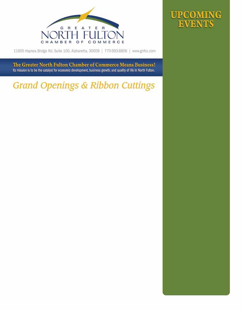 Each month, GNFCC offers an informal and fun networking opportunity in a relaxed setting hosted by GNFCC members in their place of business. Locations include some of the hottest restaurants and entertainment venues across greater North Fulton. Check the GNFCC Calendar of Events for dates and locations. Contact Debbie Ryals with questions or to register: dryals@ gnfcc.com. November
